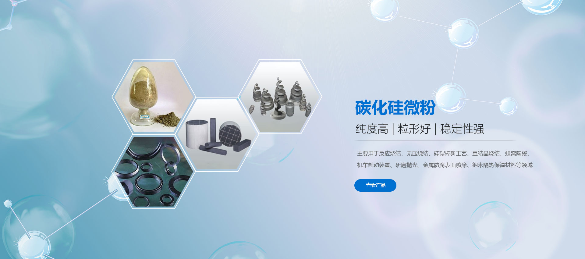 濰坊凱華碳化硅微粉有限公司成立于2002年,國家高新技術企業(yè),公司占地40畝,標準廠房19000平方,辦公樓、研發(fā)2000平方,年生產(chǎn)能力3萬噸。一直從事陶瓷級微粉的生產(chǎn)銷售,所生產(chǎn)的微粉具有純度高、粒形好、穩(wěn)定性強等特點,主要用于反應燒結、無壓燒結、硅碳棒新工藝、汽車尾氣處理(DPF)、納米隔熱保溫、機車制動、防腐涂料、研磨拋光、橡膠樹脂等領域。標準產(chǎn)品有:F240、F1200、W40、W28、W20、W14、W10、W7、W5、W3.5、W2.5、W2、W1.5、W1、W0.5、D3E、5S、100F及整形高密度系列綠碳化硅微粉,廣泛應用于燒結、防腐、研磨拋光、涂腐等廣大領域。